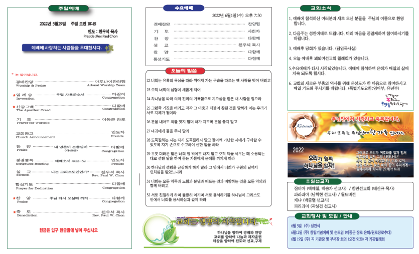 2022년5월29일 주보안내 페이지 정보 작성자 뉴비전교회 조회 517회 작성일 22-06-01 09:59 목록 본문 2022년5월29일 주보안내 이전글7월3일주보안내 22.07.17 다음글2022년5월22일 주보안내 22.06.01