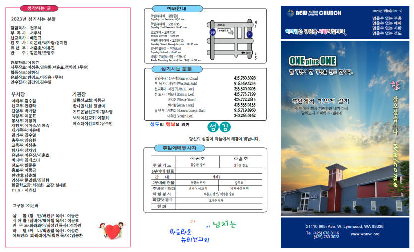 2023년1월8일 주보안내 페이지 정보 작성자 뉴비전교회 조회 611회 작성일 23-01-15 08:43 목록 본문 2023년1월8일 주보안내 이전글2023년1월15일 주보안내 23.01.30 다음글2023년1월1일 주보안내 23.01.15