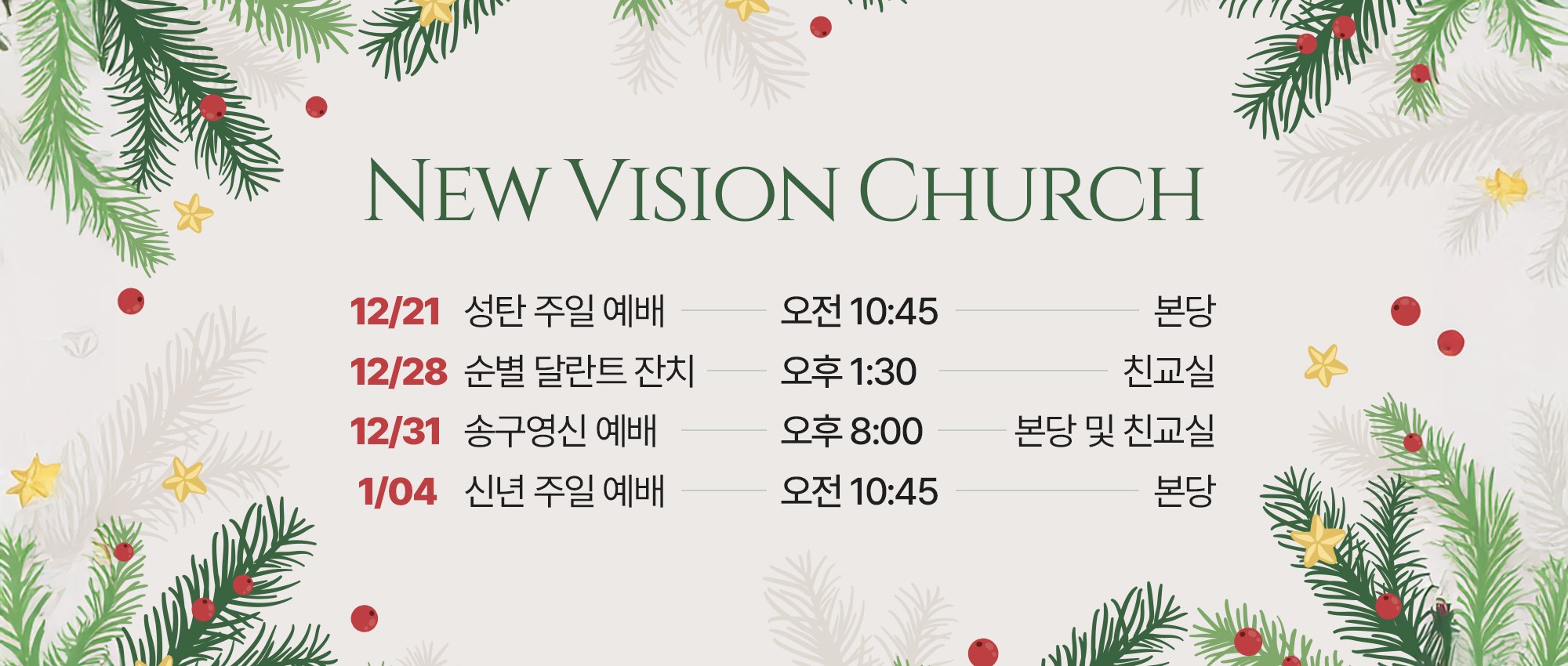 뉴비전교회 주일예배를 라이브 방송으로 시청할 수 있습니다.